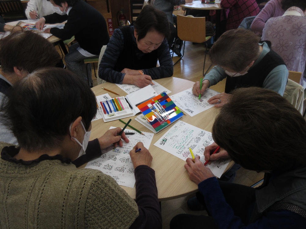| 内容 | 演歌体操などを通じ健康増進へお役立ていただけます。 3月12日(木)は茶論カレンダー作りを楽しみました。(写真) |